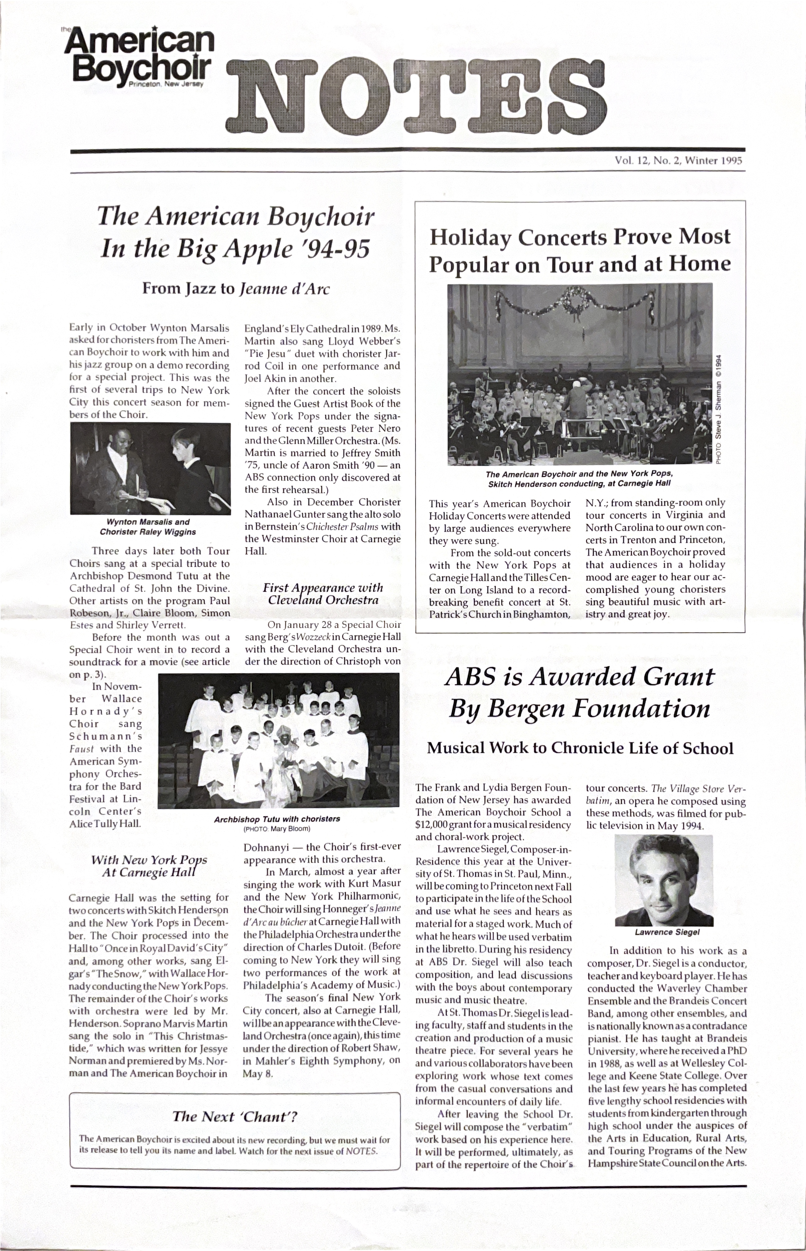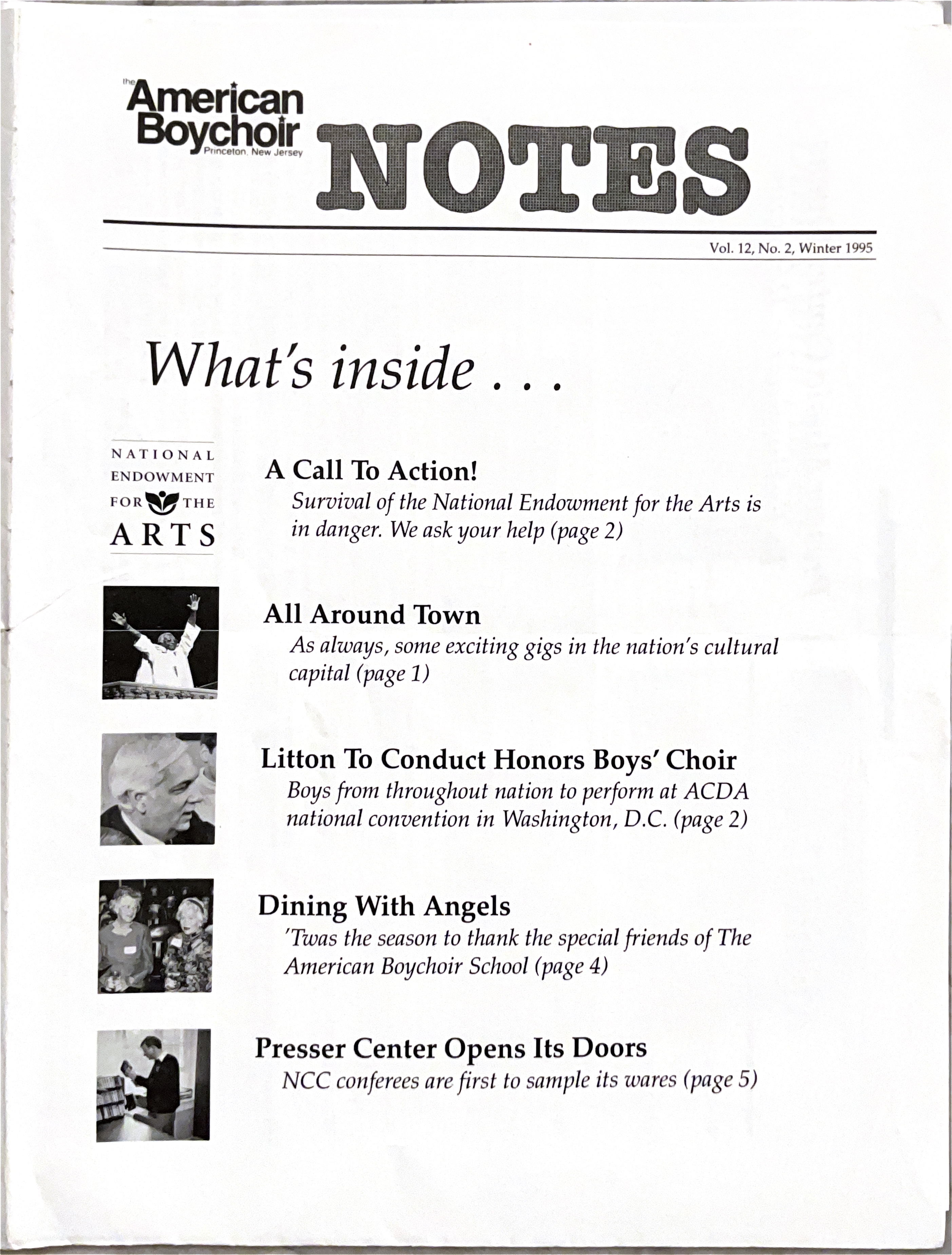 "Notes" newsletter, Vol. 12, No. 2, Winter 1995