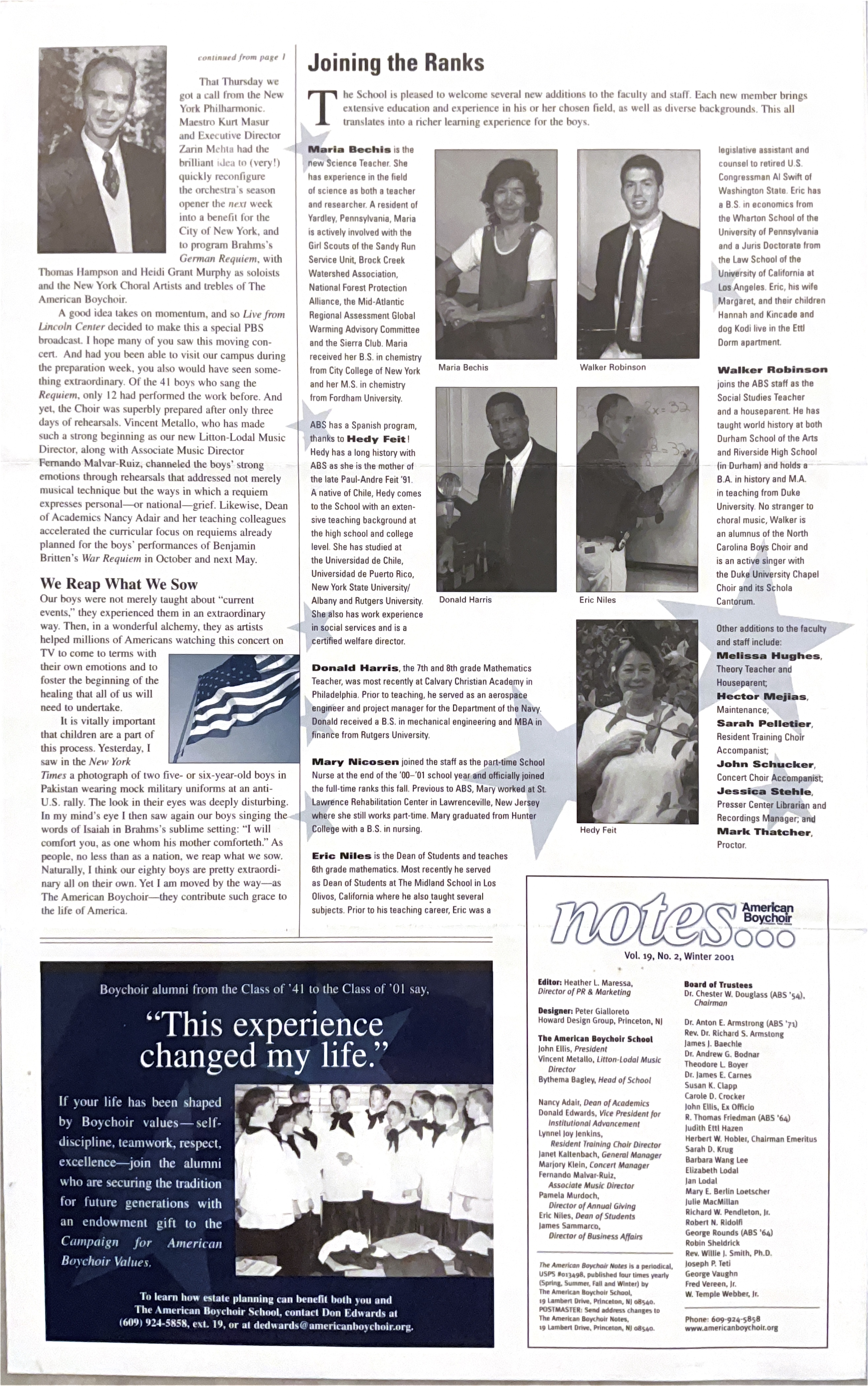 "Notes" newsletter, Vol. 19, No. 2, Winter 2001