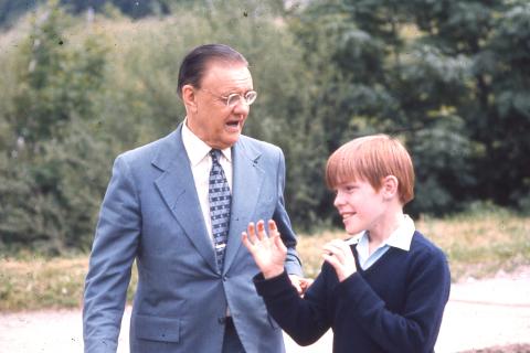 Mr. Graham Matheson talking with a red haired boy