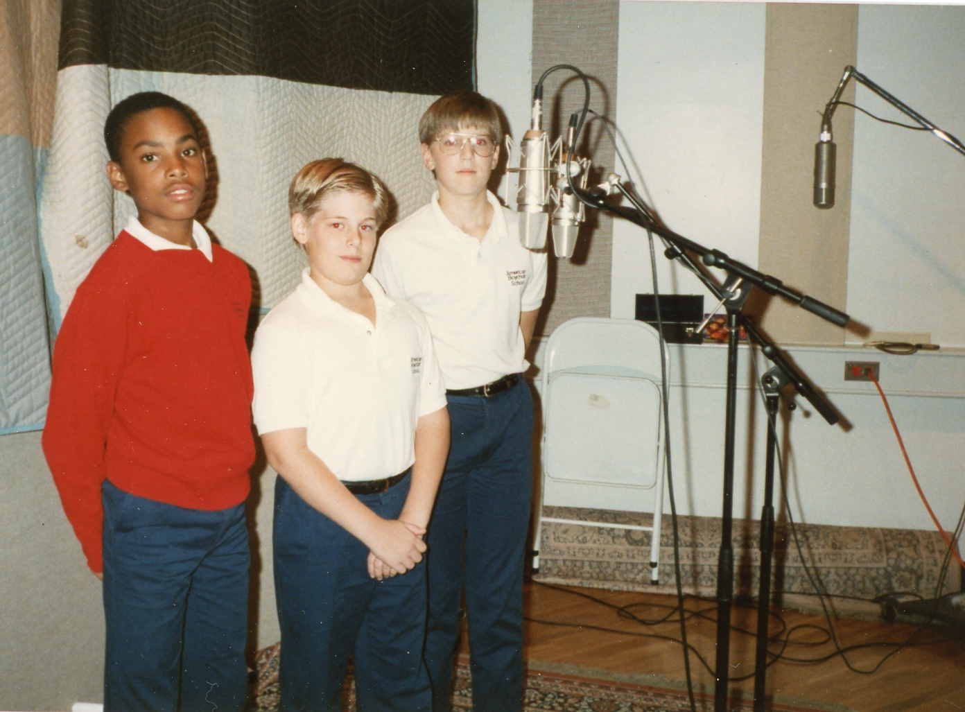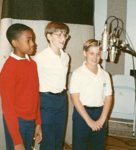 Charles Evans, Evan Weber and Jeremy Cooper standing at a microphone