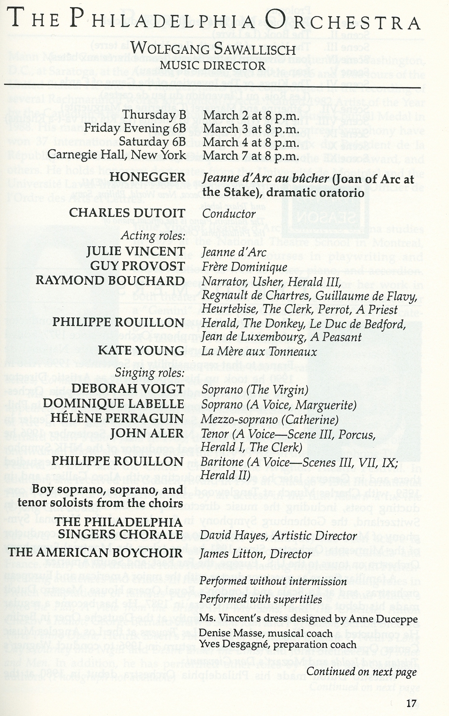 Stagebill Winter 1995 - The Philadelphia Orchestra