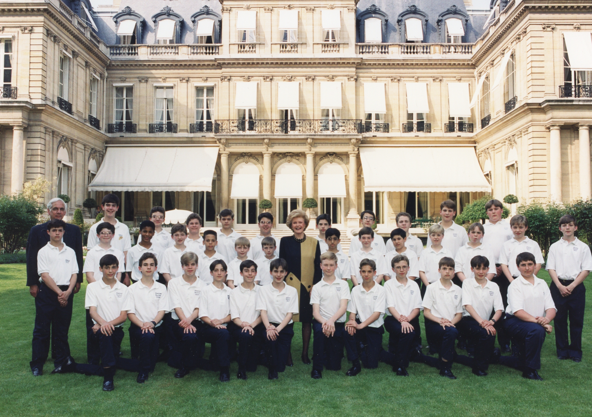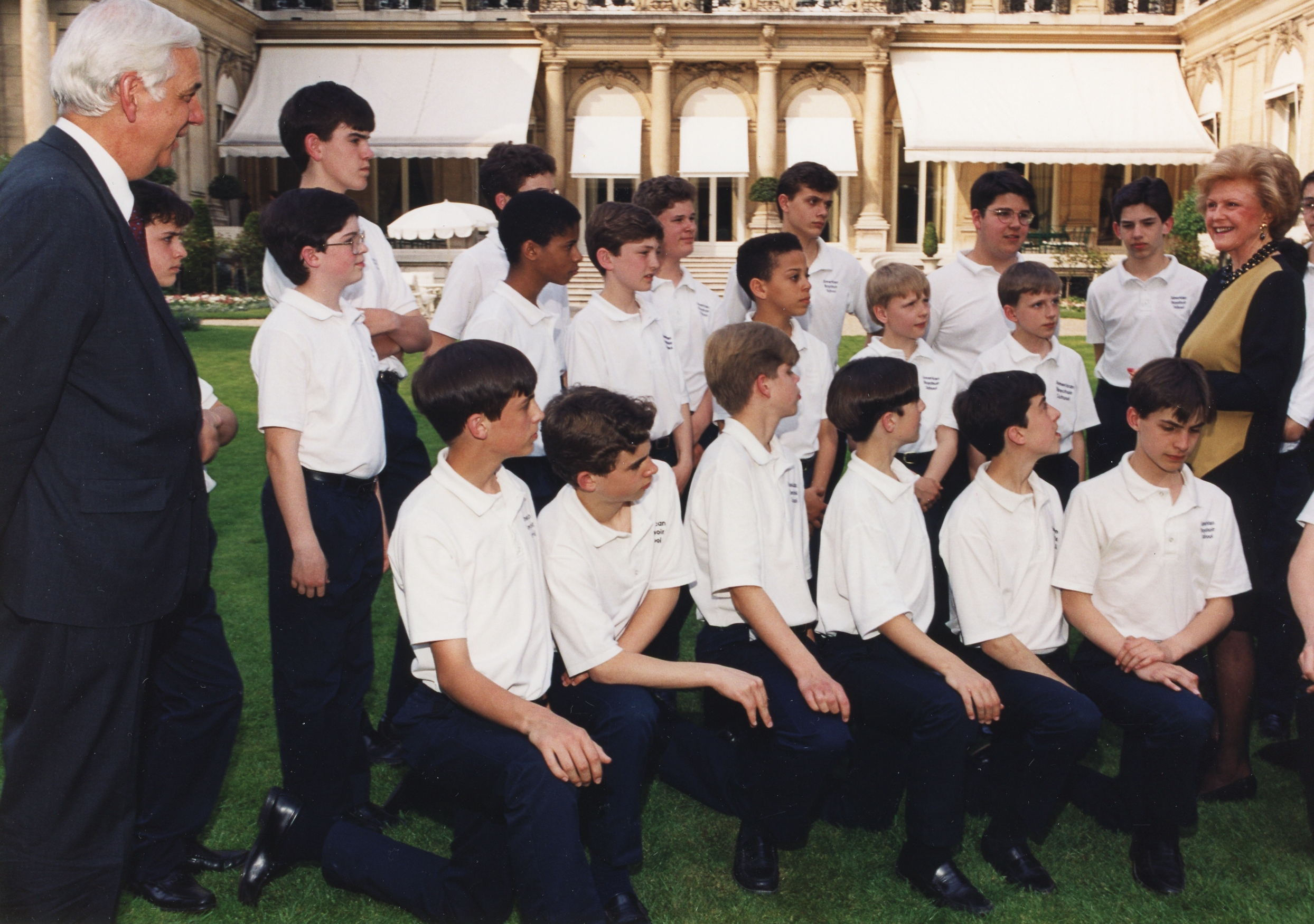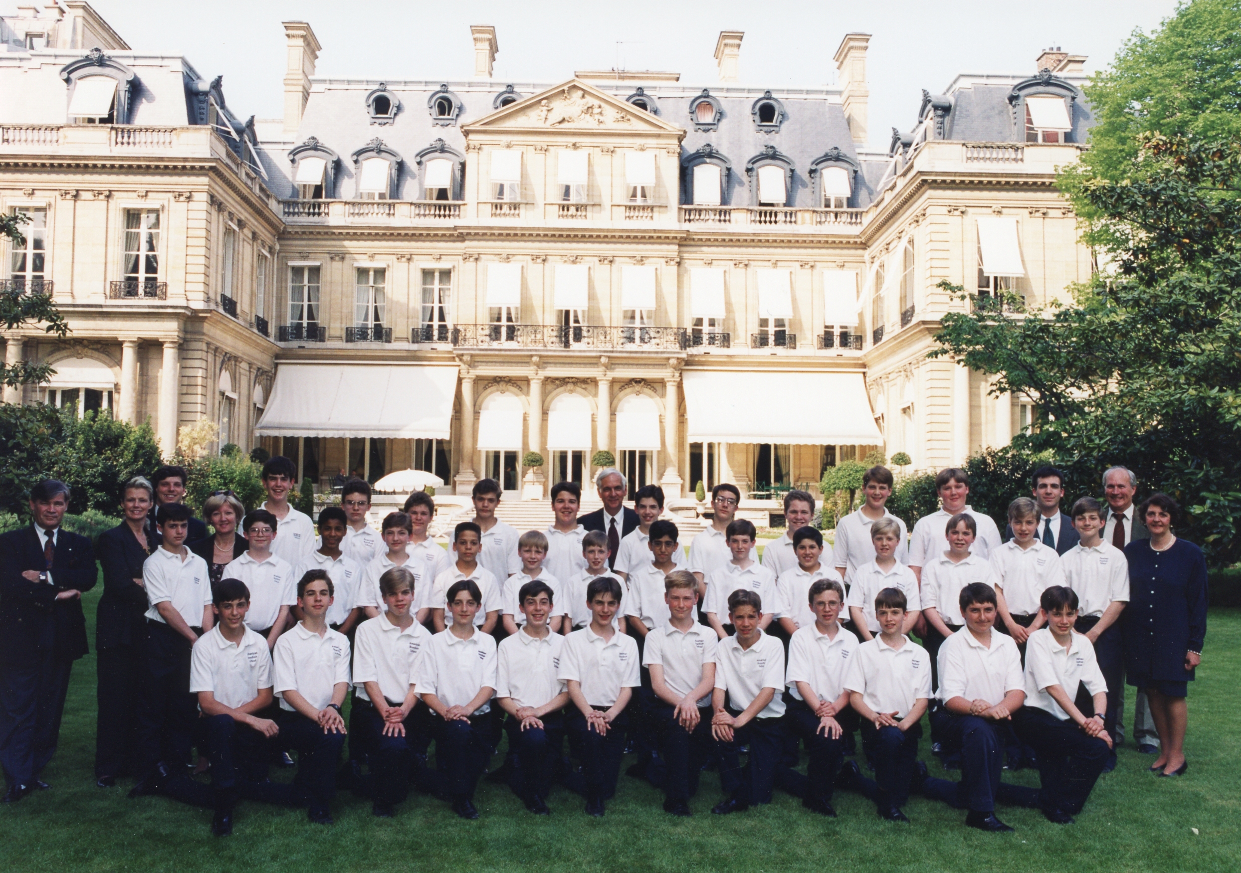 The choir with Dr. Litton assembled in front of the Hôtel de Pontalba in France