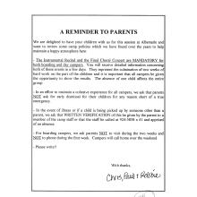 Albemarle camp program letter to parents