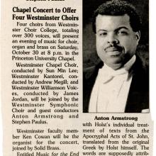 Chapel Concert to Offer Four Westminster Choirs