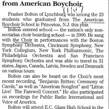 Graduation announcement of ABS student Frasher Bolton