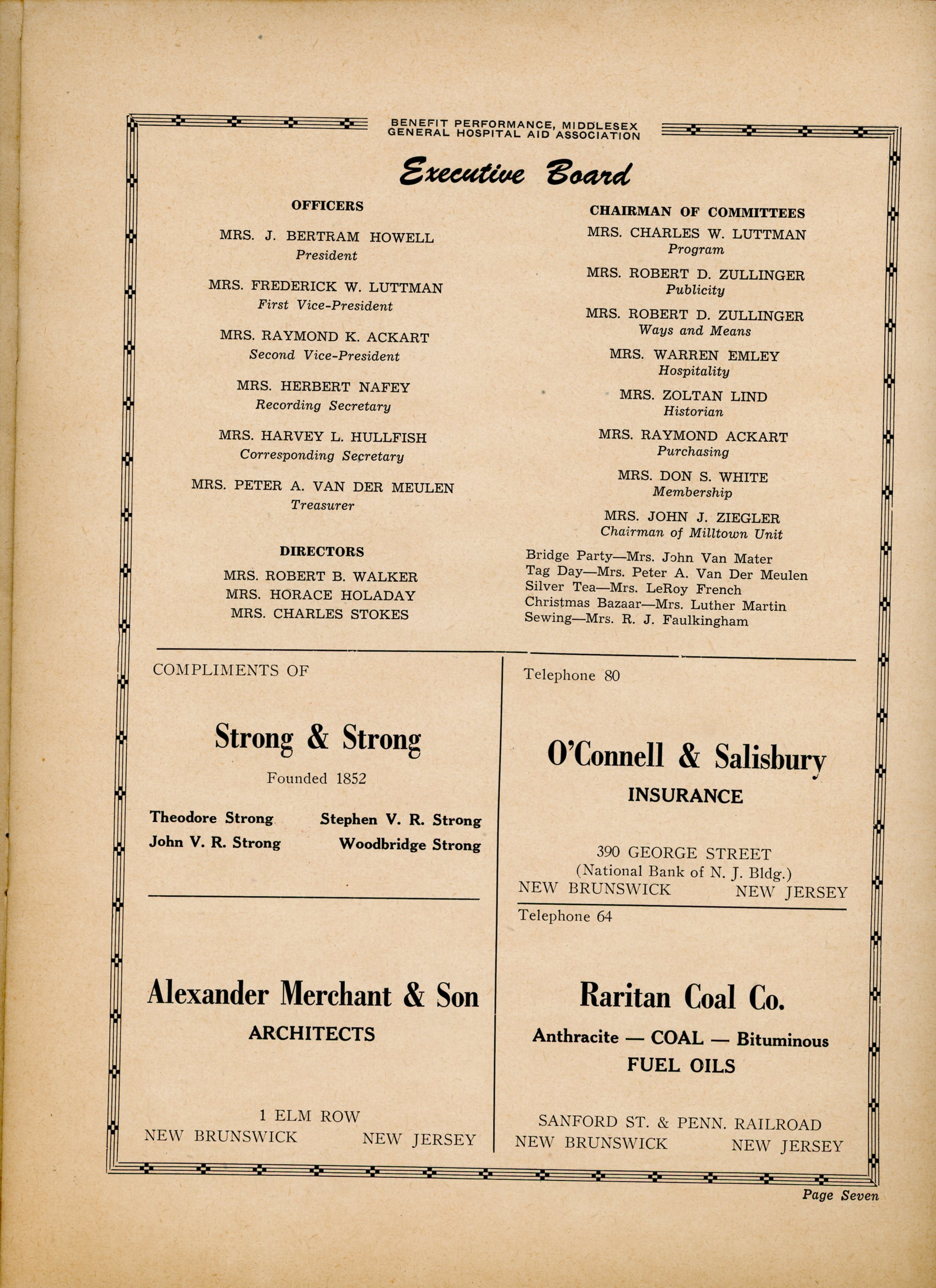 Benefit Performance for Middlesex General Hospital Aid Association