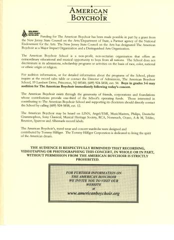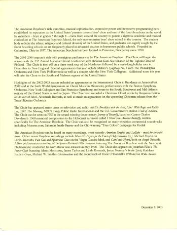 Program for performance at The Cathedral Church of St Luke, Portland, ME