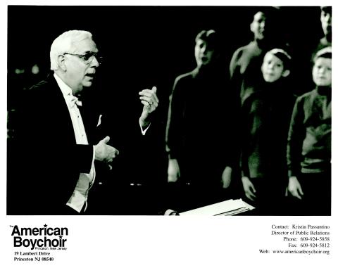 Contact print of Dr. James Litton directing boys wearing turtlenecks