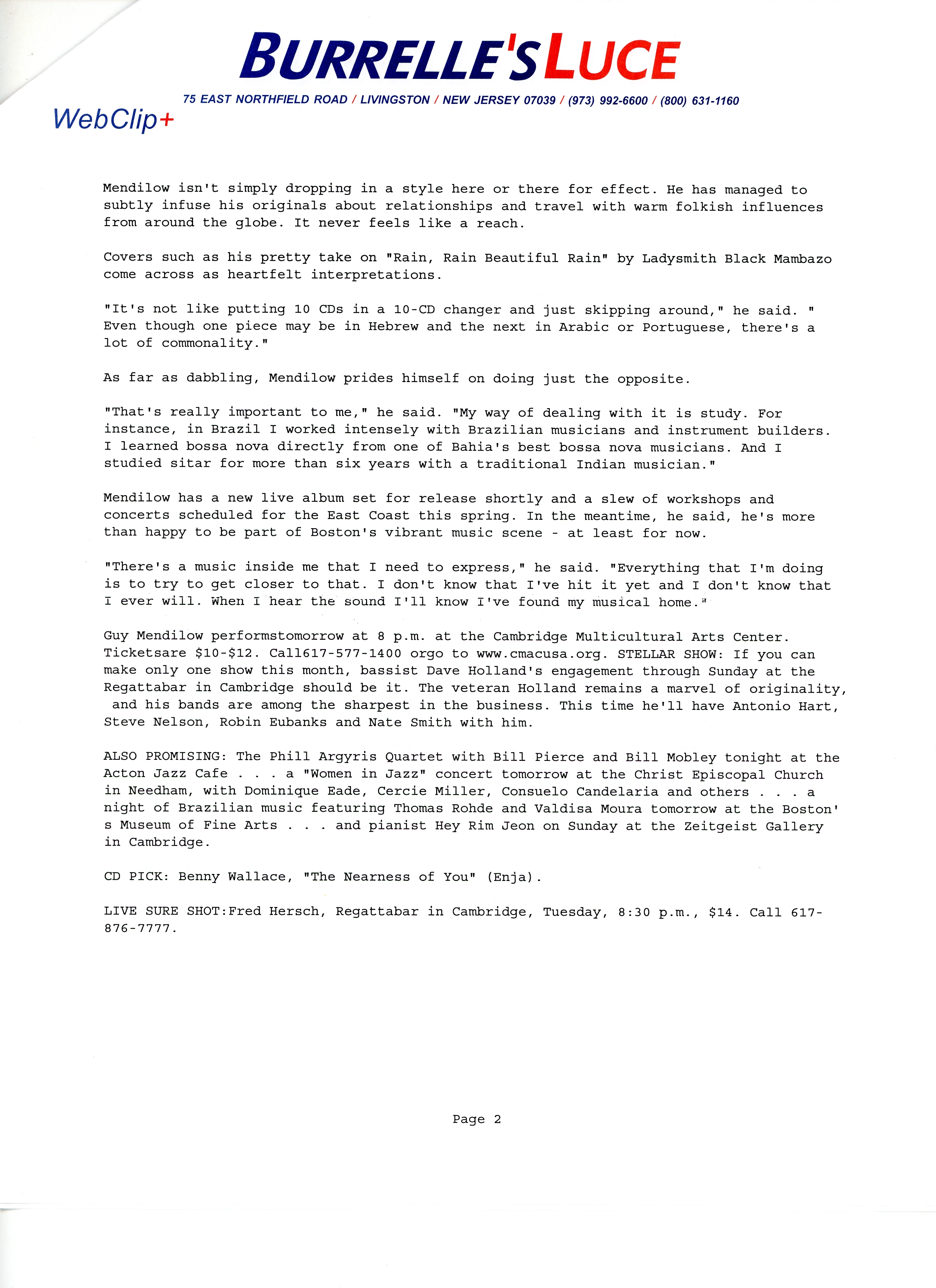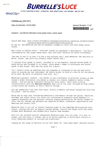 Jazz/World; Mendilow mixes global reach, artistic depth