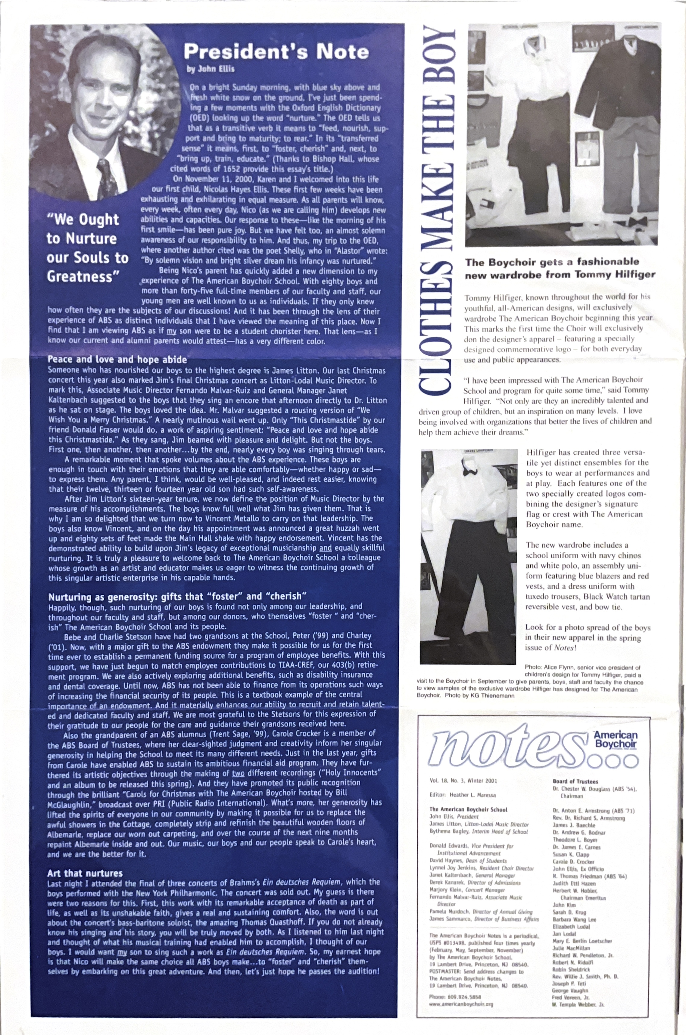 "Notes" newsletter, Vol. 18, No. 3, Winter 2001