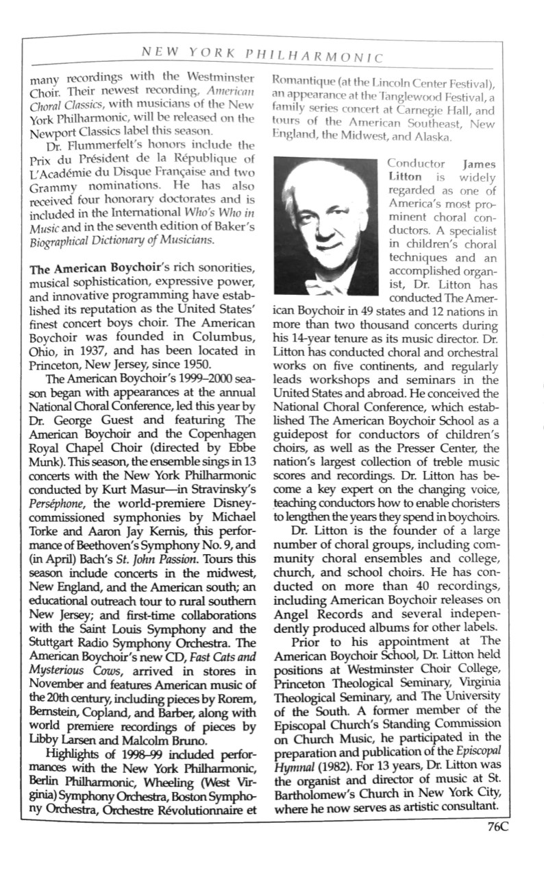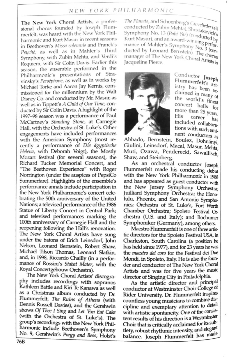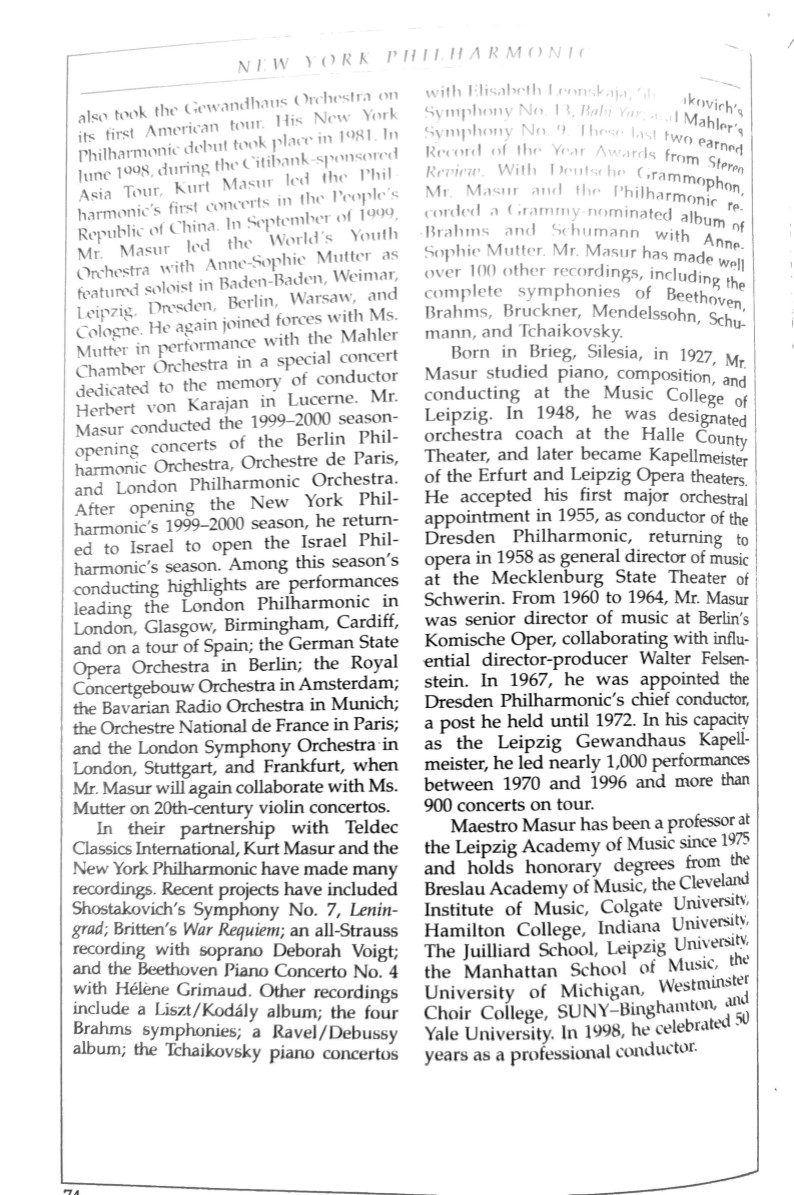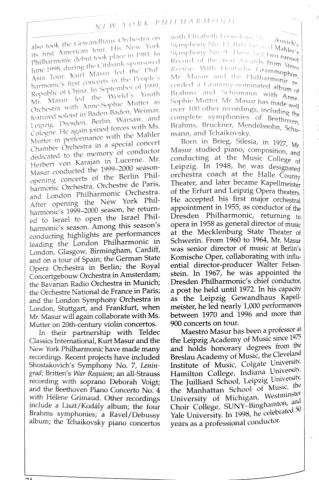 Concert of the Millennium 1999-2000 concert program