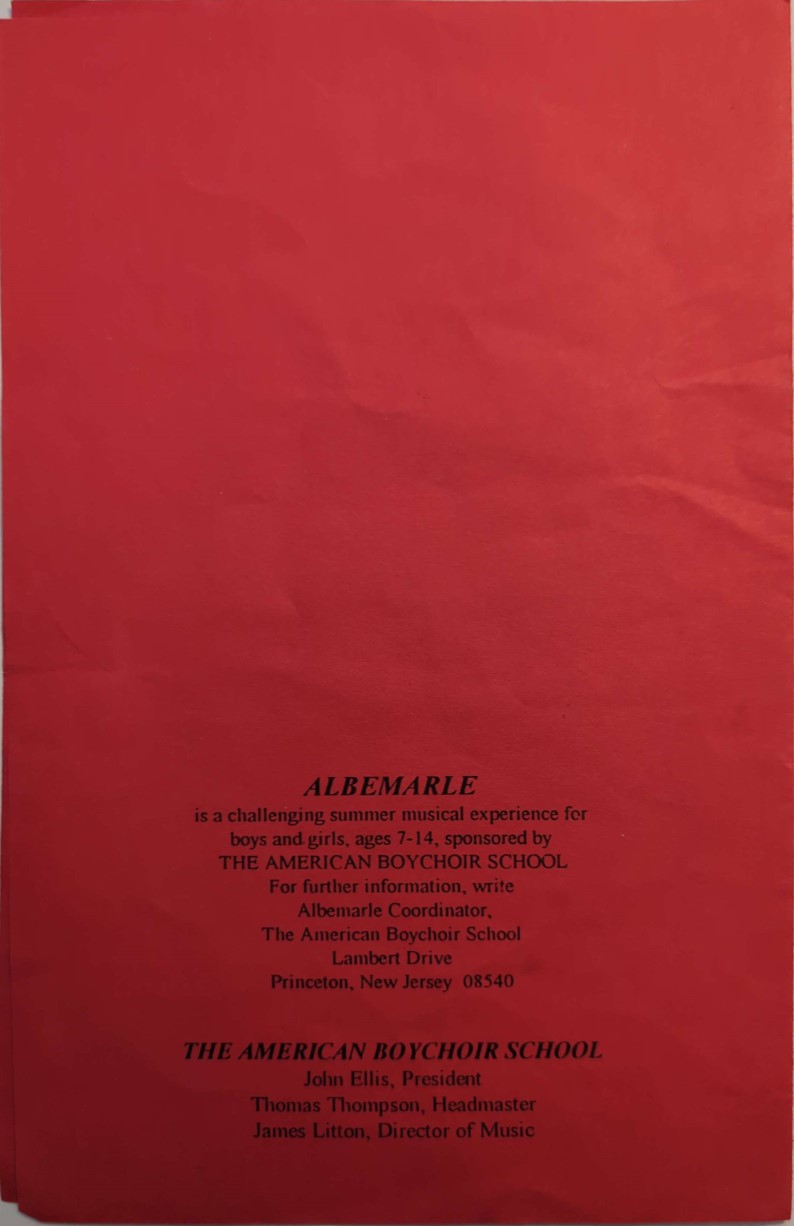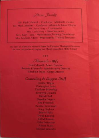 Music at Camp Albemarle concert program