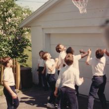 Collection of images labeled "American Boychoir, Princeton group and members playing basketball at Jadwin Gym, Princeton Univ.""