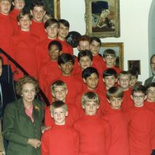 Dr. Litton with the choir assembled on the Grand staircase of Albemarle mansion