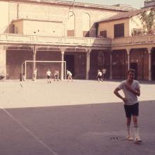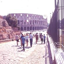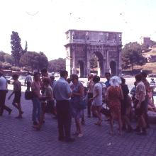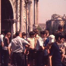 Boys visiting Villa Borghese gardens in Rome, Italy