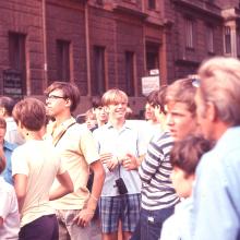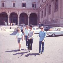 Boys visiting the Piazza della Repubblica in Florence, Italy