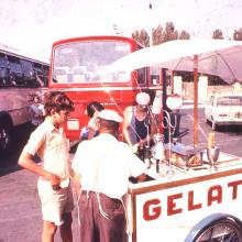 Boys at gelati frozen dessert cart in Italy