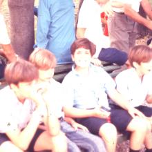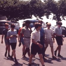 Boys, wearing white dress shirts, gathered outdoors in Italy
