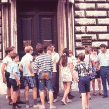 Boys outside of the American Embassy in Rome, Italy