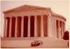Boys, wearing blue turtlenecks, on the steps of the Thomas Jefferson Memorial