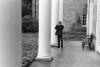 Boy using a camera at the front entrance of Albemarle mansion