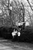 Boys wearing turtlenecks climbing in a tree on grounds of Albemarle Estate