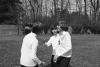 Boys wearing turtlenecks playing at the driveway entrance to Albemarle Estate