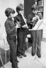 Photos of boys wearing turtlenecks rehearsing in the loggia of Albemarle mansion