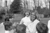 Boys wearing turtlenecks assembled outside of Albemarle mansion