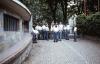 Boys wearing white button down shirts on a balcony in Spoleto. Italy