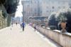 Boys walking with Pitti Palace in the background; Florence, Italy