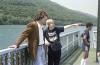 Boys standing with woman with brown hair on deck of the Hiawatha Riverboat; Pennsylvania