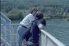 Boy with blonde hair standing on deck of the Hiawatha Riverboat; Pennsylvania