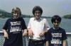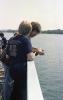 Three boys standing on deck of the Hiawatha Riverboat looking out over water