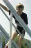 Boy with dark hair on stairs of the Hiawatha Riverboat; Pennsylvania