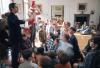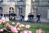 Boys in dark sweaters and collared shirts touring a building in Austria