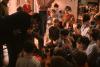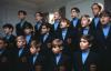 Boys in light blue turtlenecks and dark blazers singing at Albemarle