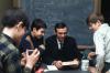 Eric Cohen, Peter Schnetzer, Mr. Jewel, John Hardwicke, & Randall Wilson (?) gathered at a desk