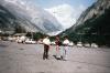 3 boys in white button up shirts in front of the Basilica Don Bosco