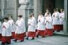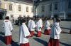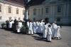 Boys wearing vestments in courtyard of Zwettl Abbey Monastery in Zwettl, Austria