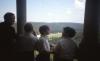 3 boys in white button up shirts on a balcony overlooking hillside