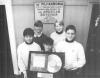 Boys are holding a plaque commemorating The Traditions of Christmas album