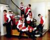 Boys wearing red vests doing silly poses on the grand staircase of Albemarle