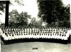Group photo of boys wearing vestments outside of Albemarle mansion