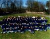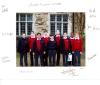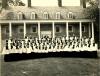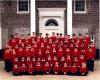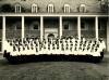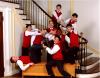 Boys wearing red vests posing by the Grand Staircase of Albemarle mansion