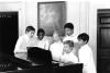 Boys gathered at a piano in Albemarle mansion (1986-1987)